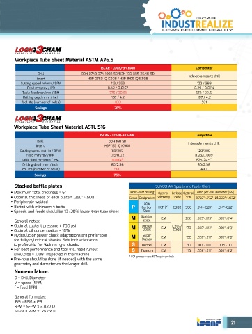 • Speeds and feeds should be 10÷20% lower than tube sheet Steel