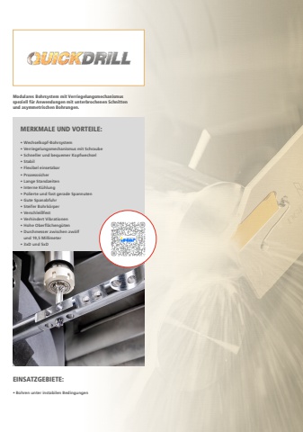 EINSATZGEBIETE:%u2022 Bohren unter instabilen BedingungenMERKMALE UND VORTEILE:%u2022 Wechselkopf-Bohrsystem%u2022 Verriegelungsmechanismus mit Schraube%u2022 Schneller und bequemer Kopfwechsel%u2022 Stabil%u2022 Flexibel einsetzbar%u2022 Prozesssicher %u2022 Lange Standzeiten%u2022 Interne K%u00fchlung%u2022 Polierte und fast gerade Spannuten%u2022 Gute Spanabfuhr%u2022 Steifer Bohrk%u00f6rper%u2022 Verschlei%u00dffest %u2022 Verhindert Vibrationen%u2022 Hohe Oberfl%u00e4cheng%u00fcten%u2022 Durchmesser zwischen zw%u00f6lfund 19,5 Millimeter%u2022 3xD und 5xDModulares Bohrsystem mit Verriegelungsmechanismus speziell f%u00fcr Anwendungen mit unterbrochenen Schnitten und asymmetrischen Bohrungen.