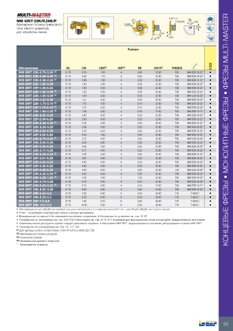 MM GRIT 22K-2.50-0.20 21.70 2.50 4.50 4 0.20 22.00 T08 MM EGR 20-22* • КОНЦЕВЫЕ ФРЕЗЫ • МОНОЛИТНЫЕ ФРЕЗЫ • ФРЕЗЫ MULTI-MASTER