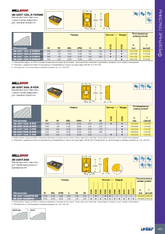 •  Пластины с радиусом более 0.8 мм должны устанавливаться только на торец фрез 3M SM-20 • Руководство по эксплуатации и режимы резания см. стр. 542-547