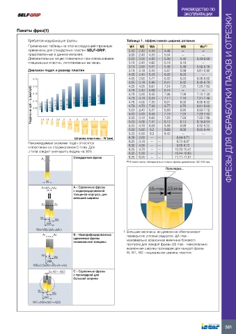 Диапазон подач и размер пластин 3.18 3.18 5.10 - 5.57 5.58 5.61-5.92