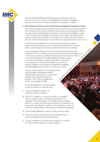 privados de una persona puedan entrar en conflicto con los intereses del IMC. Cualquier