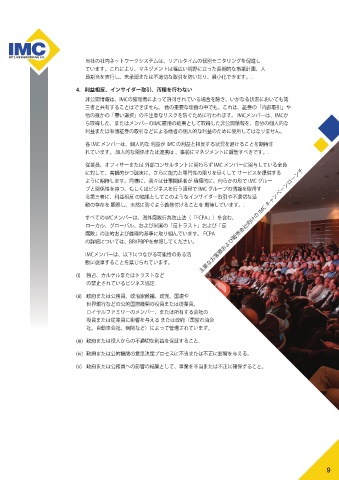 各 IMC メンバーは、個人的な 利益が IMC の利益と相反する状況を避けることを期待さ